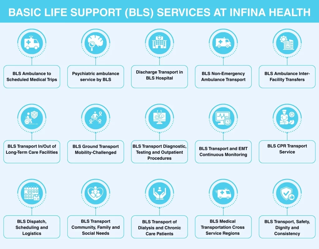This detailed guide will cover all you need to know about BLS services provided by Infina Health, including types of patients it aims to serve, features of the services, safety concerns, compliance, and types of transportation it offers, but with the focus on patient dignity, comfort, and wellbeing.