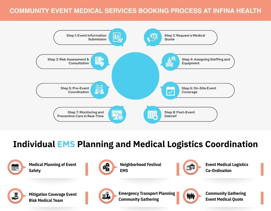 The community activities unite people, family members enjoying local customs, communities hosting festivals, towns conducting charity runs, or organizations planning outreach events. Although each meeting has its own purpose, all of them have a common need, which is safety. At Infina health, we ensure a higher level of safety within the community by providing a complete 24/7 medical standby, risk reduction, and smooth on-site medical response to all types of public events, big and small. Our expert, community-oriented EMS model is not only created to react to an emergency but also to stop it.