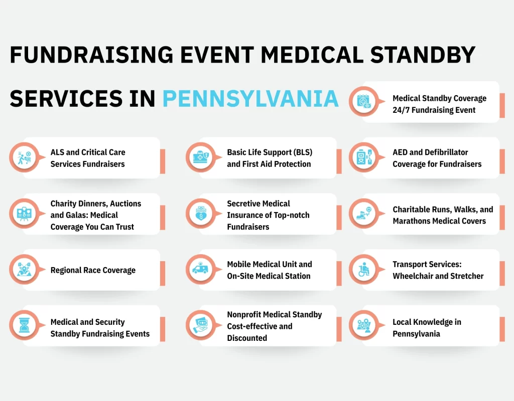 At Infina health we deal with fundraising event medical standby services that are meant to protect the attendees, volunteers, donors, staff and VIPs of the event and guarantee full compliance and smooth running of the entire event. Our licensed EMS teams have customized medical standby plans for fundraiser medical standby, nonprofit medical standby, and discreet medical standby coverage all at an affordable cost in Reading, Berks County, Wyomissing, Philadelphia, Muhlenberg Township and the Lehigh Valley.