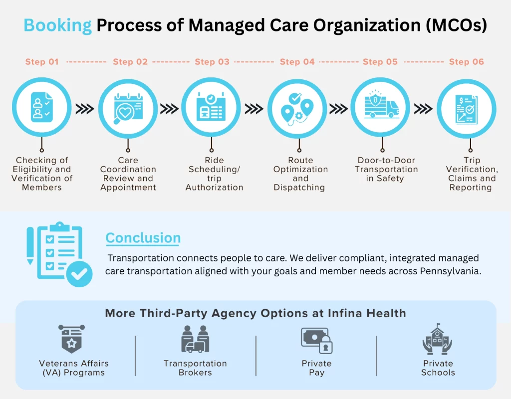 This gap is bridged by managed care transportation services, which enable continuity of care, enhancement of patient mobility access, and minimization of unnecessary hospital visits. By specializing in providing safe, compliant and coordinated healthcare rides as an MCO-approved medical transport provider, we focus on the coordination of comprehensive managed care networks.